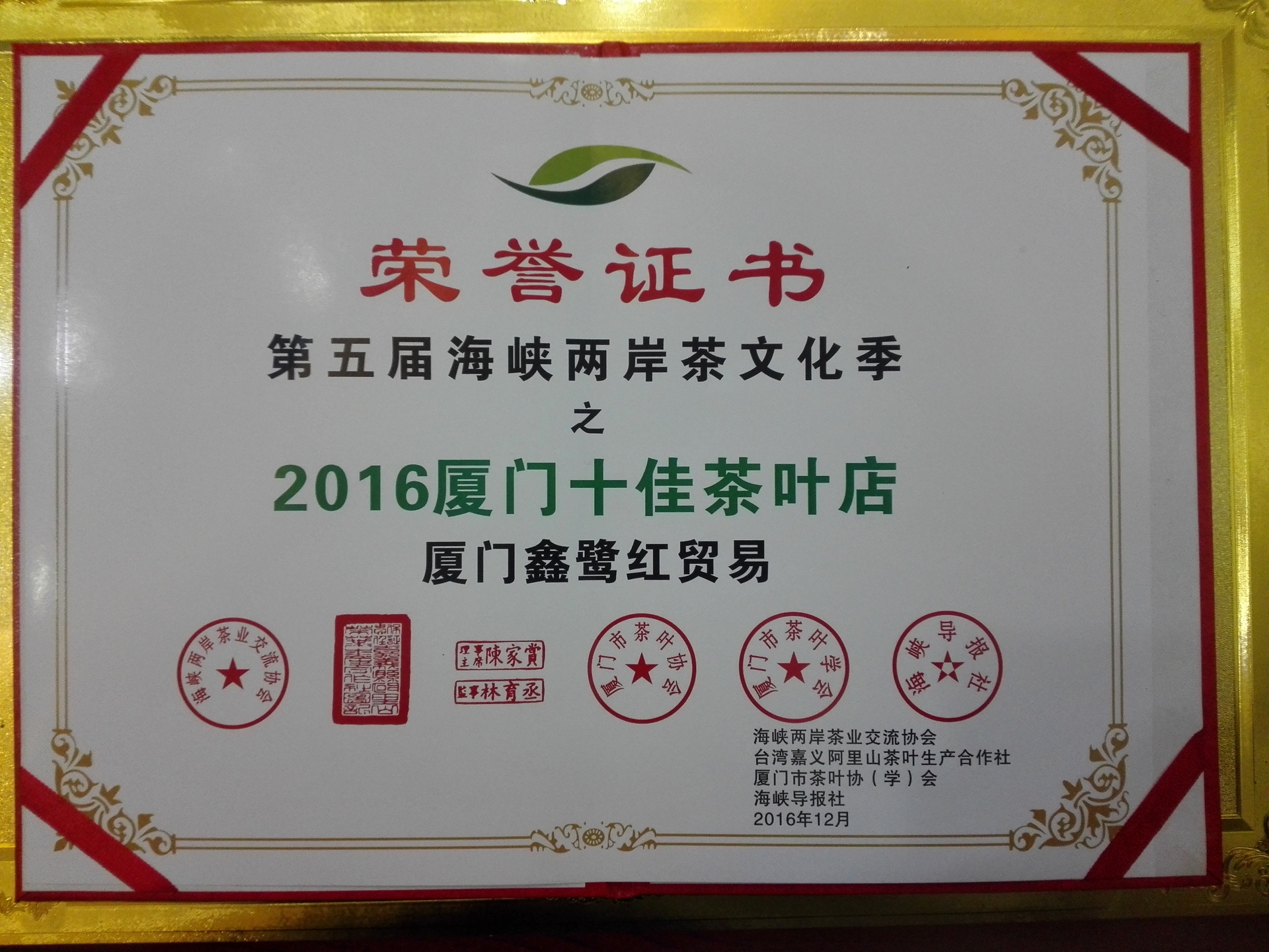 厦门市鑫鹭红茶业有限公司 主营:乌龙茶、白茶、红茶、普洱茶等国内各种名茶。培训:评茶员、茶艺师、茶叶加工工等。品牌:鑫鹭红、 幽枞岩溪、 隆觉、 近水得月、壶中聚、 汲韵天呈、银月芽等。拥有茶叶专业加工合作社,良好的生态茶园,强大的专业技术力量及优秀的管理团队。 由厦门市人力资源与社会保障局授予《厦门殷露评茶技能大师工作室》、同时建立《公司茶叶质量专业教学审评室》 荣获福建省首批倡导“放心茶品牌单位”、11315国家立信单位、厦门市十佳茶庄、厦门市十佳茶叶店等荣誉称号。加入中国茶叶学会、福建省茶叶学会、厦门茶叶商会副会长等单位。 团队现有国家职业技能鉴定高级考评员、国家职业技能竞赛裁判员、国家职业技能竞赛督导员、国家一级评茶技师各两名、国家一级茶艺技师一名、高级评茶员两名、中级茶艺师两名等。 获奖主要有:普洱茶茶王、漳平水仙茶王、福鼎白茶茶王、肉桂金奖、水仙金奖等。 鑫鹭红欢迎与全国各地优秀的茶企、茶商、茶叶种植加工企业及茶叶爱好者一起发展、推广茶事业,实现共赢! |