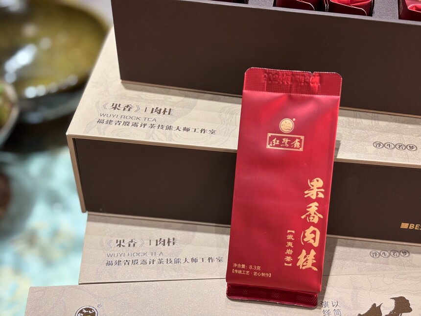岩茶系列 花果香肉桂(2025岩茶.二两装) 配料:武夷岩茶 等级:一级 原料产地:福建省武夷山市 产地:福建省厦门市 净含量:8.3克X12泡 包装日期:2025/09/20 品质特征:汤色金黄明亮,香气馥郁花果香明显,醇厚甘爽,叶底匀齐亮。 零售价:198.00元/盒 装箱数量:20盒/箱 所有评价(0)